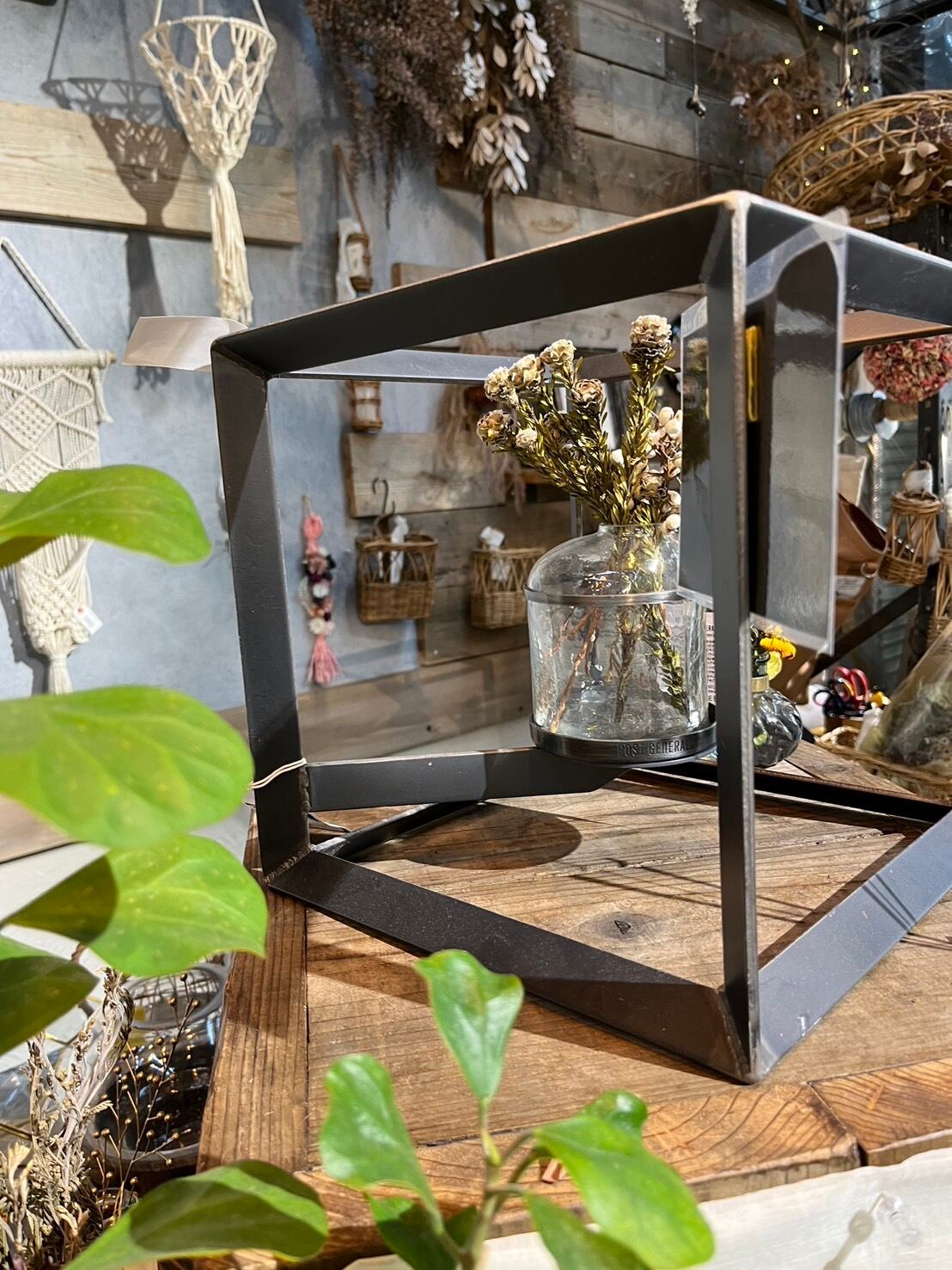 この花瓶置きは、立体感を出す為に2mmの鉄板を使用し、職人の手によって一つ一つ丁寧に作られています。耐久性と美しさを兼ね備えたものを厳選。お気に入りの花を飾るだけでなく、インテリアとしてもお部屋のアクセントになること間違いありません。